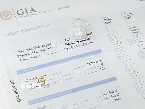 天然鑽石 GIA 1.03CT E/SI1 花式切工 橄欖型 馬眼鑽 鑽石戒指 鑽戒 天然真鑽 造形 白K金材質 鑽戒 (已售出)